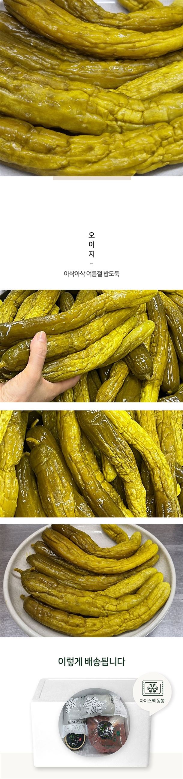 1-6. 원재료명 (「농수산물의 원산지 표시 등에 관한 법률」에 따른 원산지 표시 포함) 및 함량(원재료 함량 표시대상 식품에 한함) | 오이(국산)80%,정제소금(국산)14%,설탕5.8%,초산 |