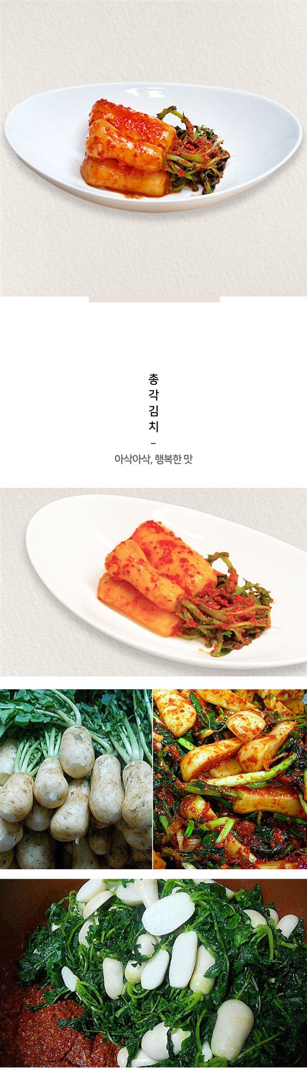 | 1-6. 원재료명 (「농수산물의 원산지 표시 등에 관한 법률」에 따른 원산지 표시 포함) 및 함량(원재료 함량 표시대상 식품에 한함) | 총각무(국산),고춧가루(국산),마늘(국산),생강,새우젓,멸치액젓 |